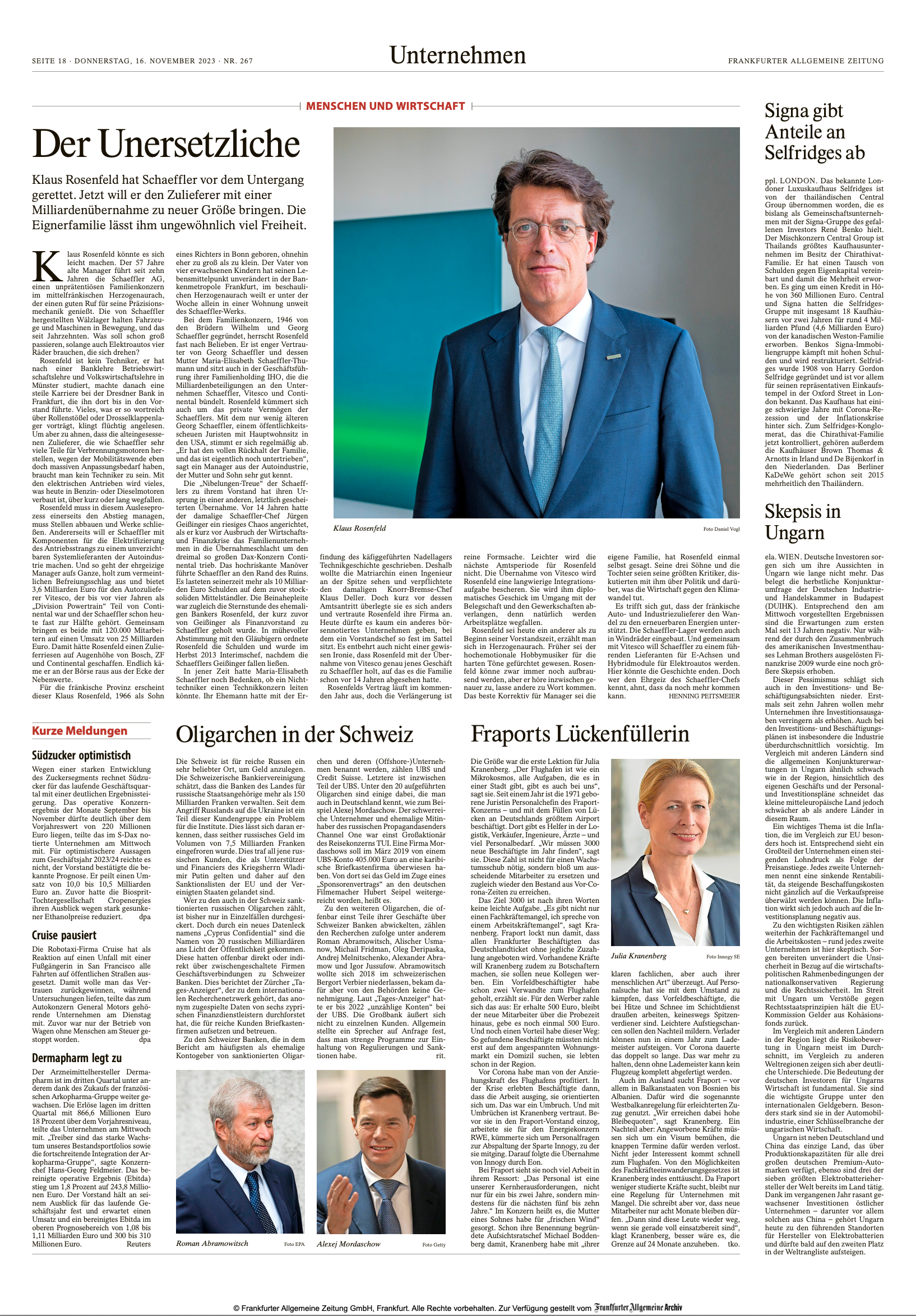 im Porträt für die F.A.Z. Sonntagszeitung.